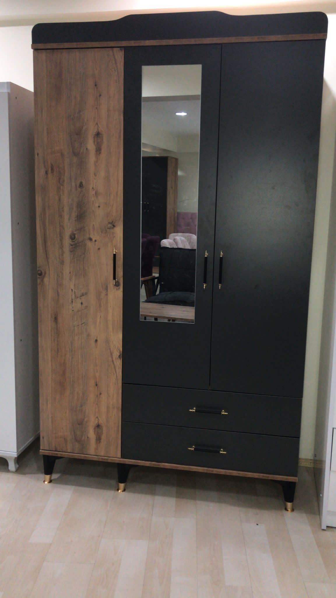 Ürün son moda tarz antrasit ve çam renk kombinasyon yapılmıştır bir bölümü askılık diğer bölümü raf şeklinde altta iki çekmecesi mevcut iki yıl garantili
