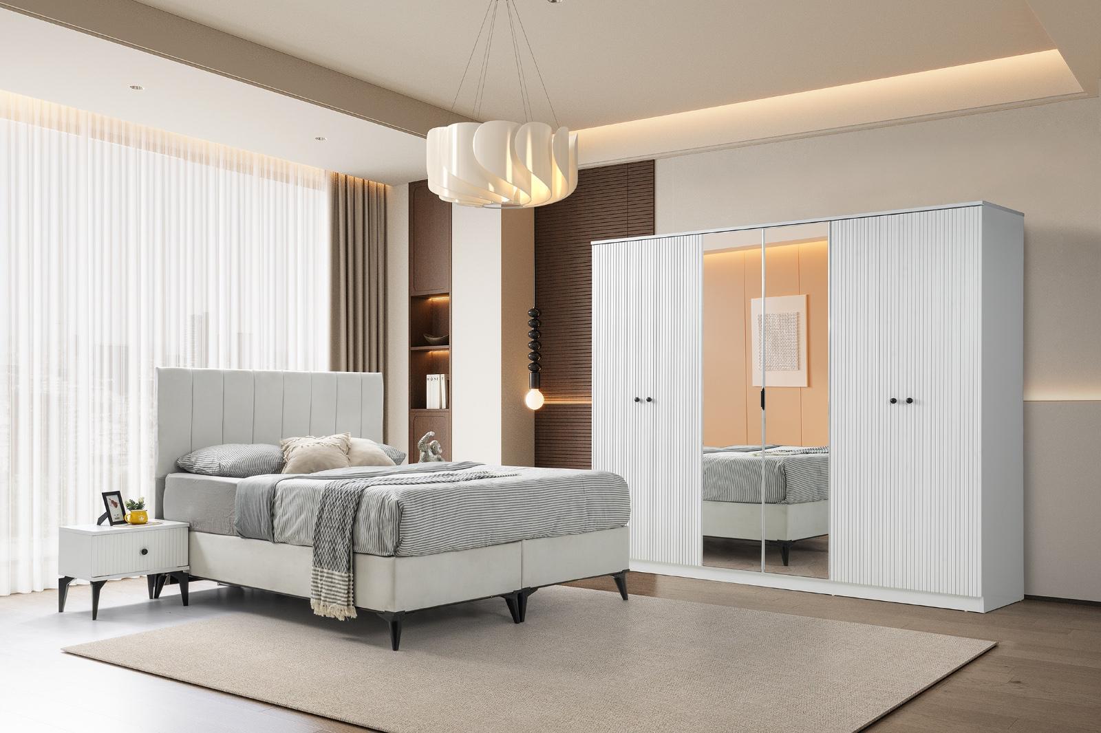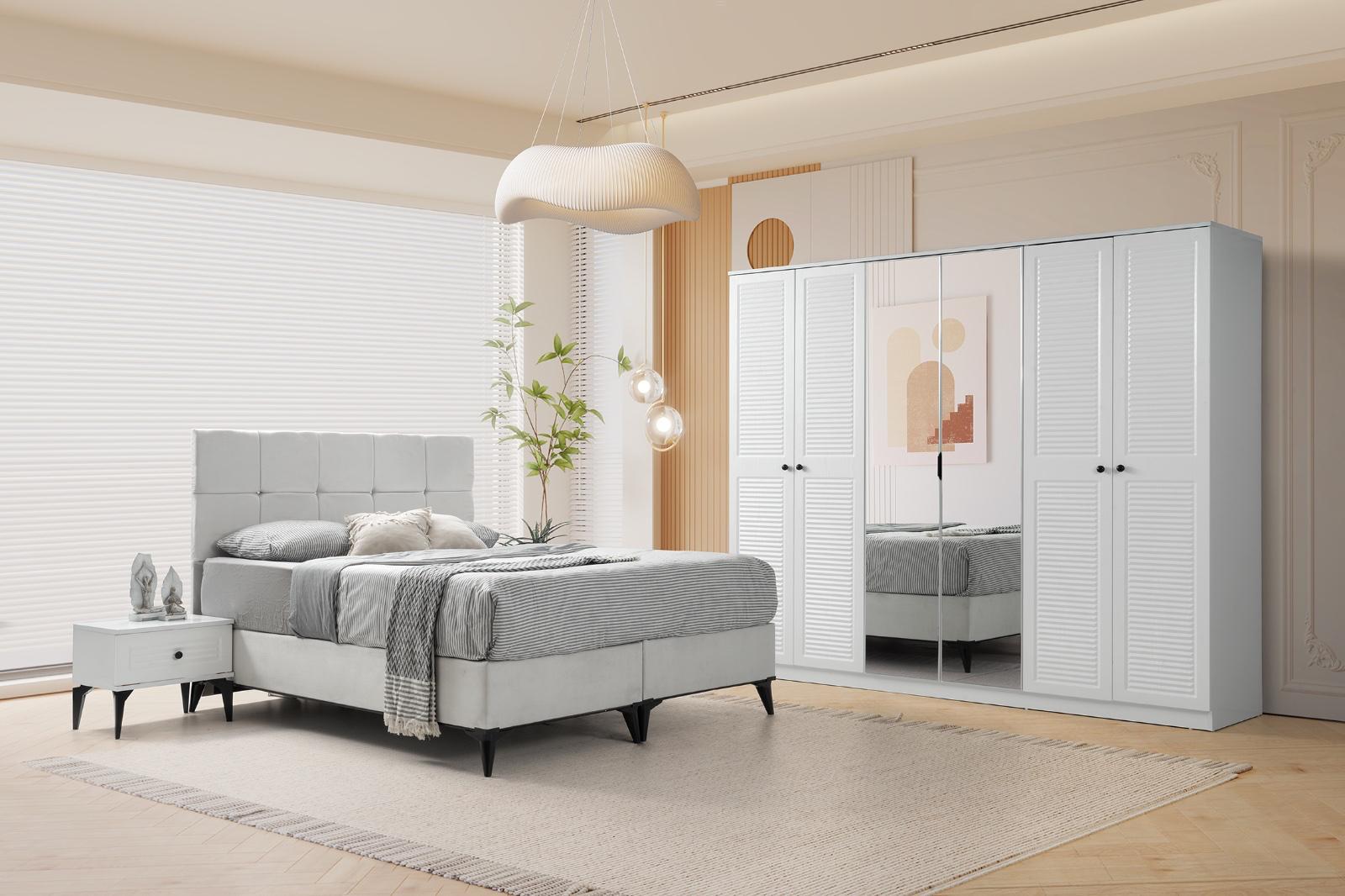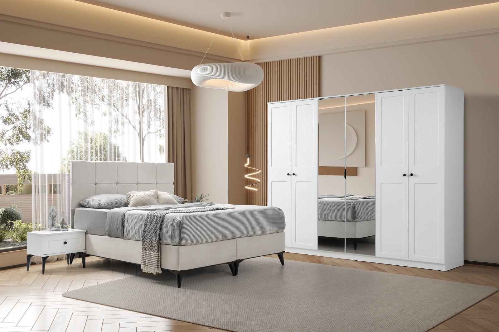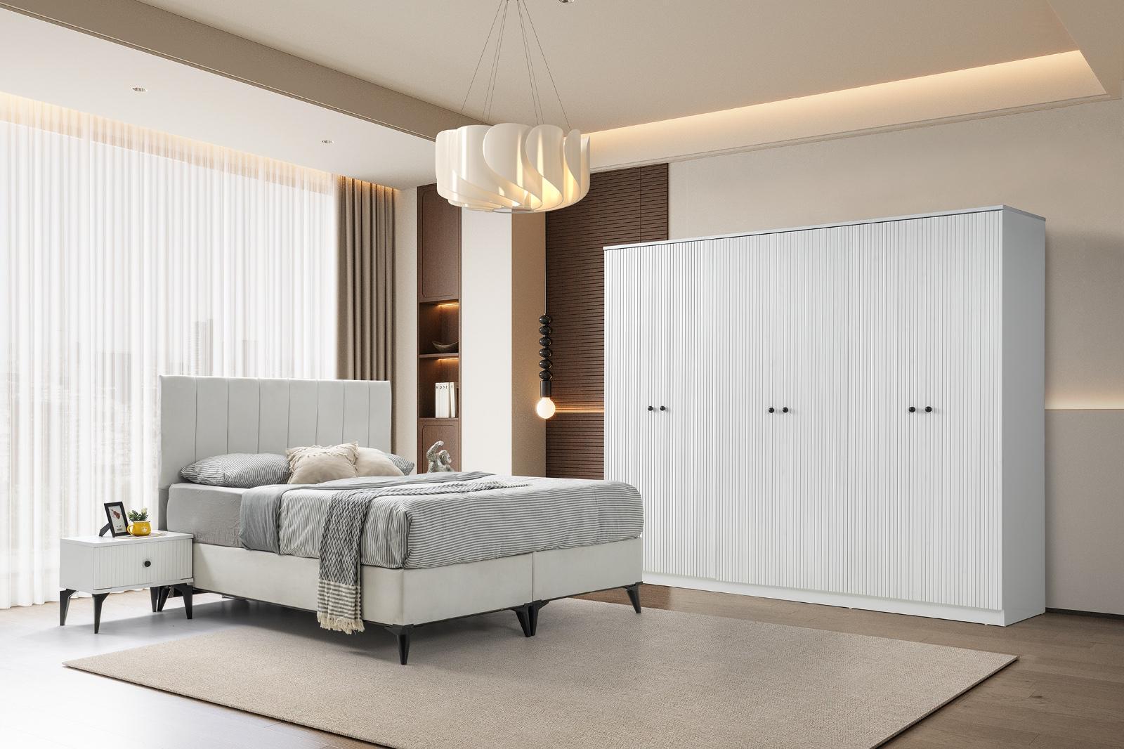 Bohem yatak odası modelimiz evinize tarz katacak trend üründür 6 kapı gardrop mdf lake boyalı 230x220cm 54 derinlik ölçülerine sahip kullanışlı bir dolaptır yeni model şifoniyer ve iki adet komidin 160 x200 başlık baza ve ultra ortapedik yatak kredi kartına ℅20;farkla taksit imkanı